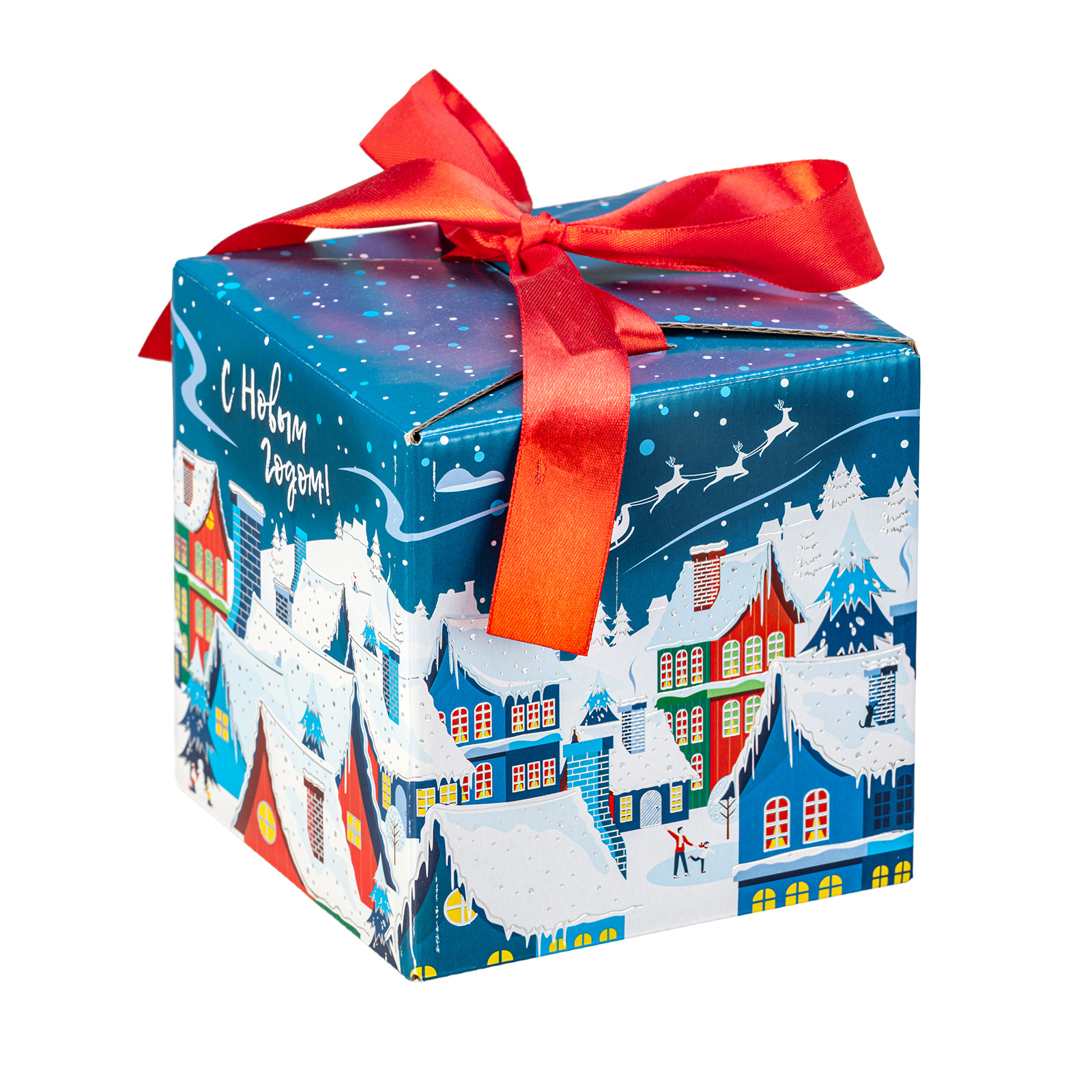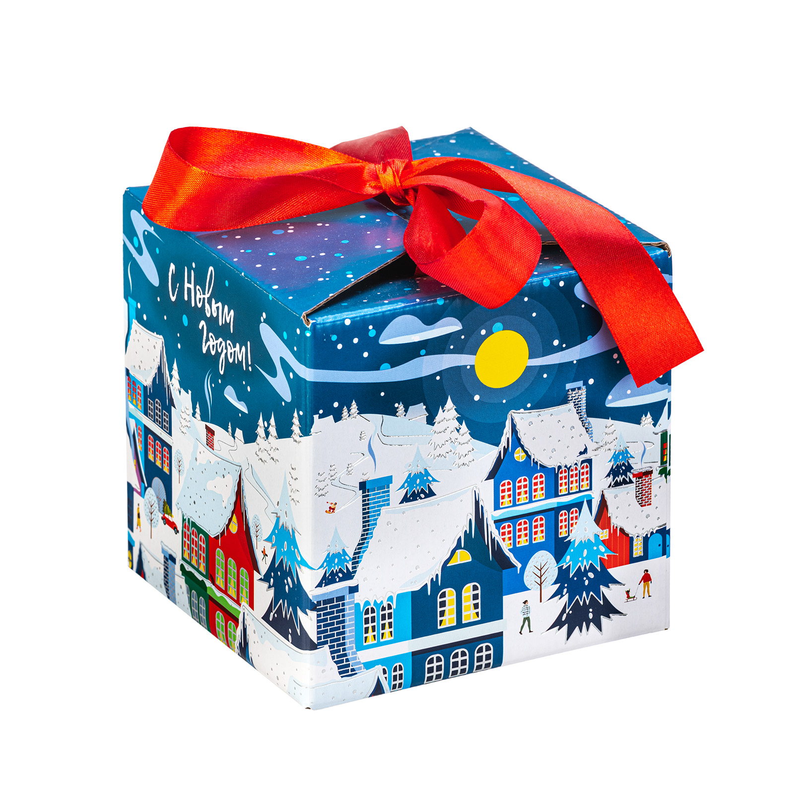 Ищете новогодний подарок для ребенка или взрослого? Присмотритесь к подарочному набору “Зимняя палитра”. Это небольшой картонный кубик с изображением заснеженного ночного города и небольшой поздравительной надписью. На верху упаковки есть небольшой контрастный бантик, потянув за который, вы откроете самый настоящий ларец с сокровищами. В этот подарок входят отборные сладости, с которыми любое вечернее чаепитие превратится в самое настоящее торжество, а также небольшой памятный сувенир, благодаря которому атмосфера тепла и радости надолго сохранится в вашем доме.