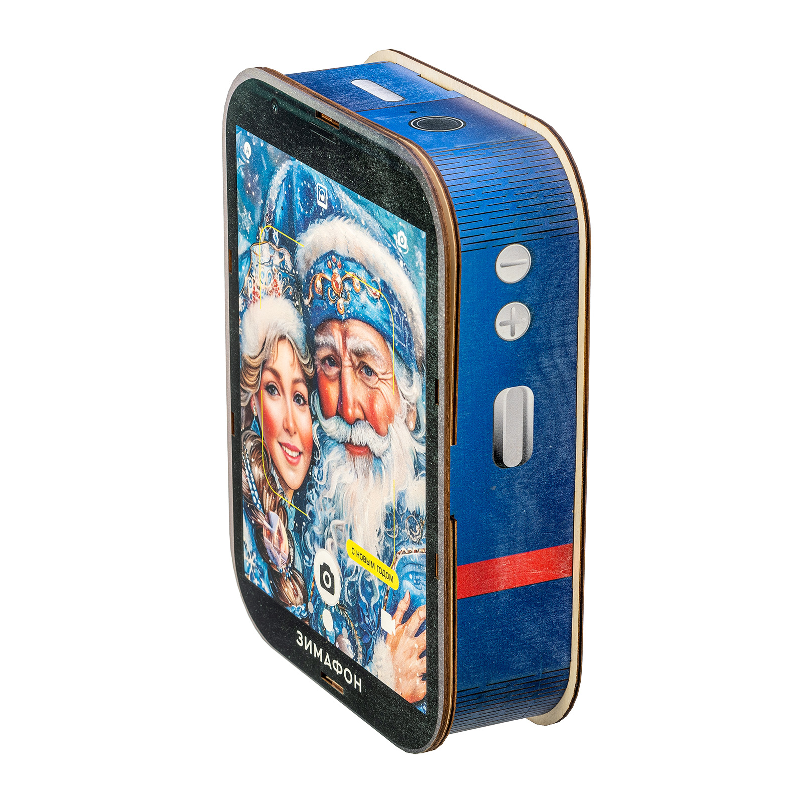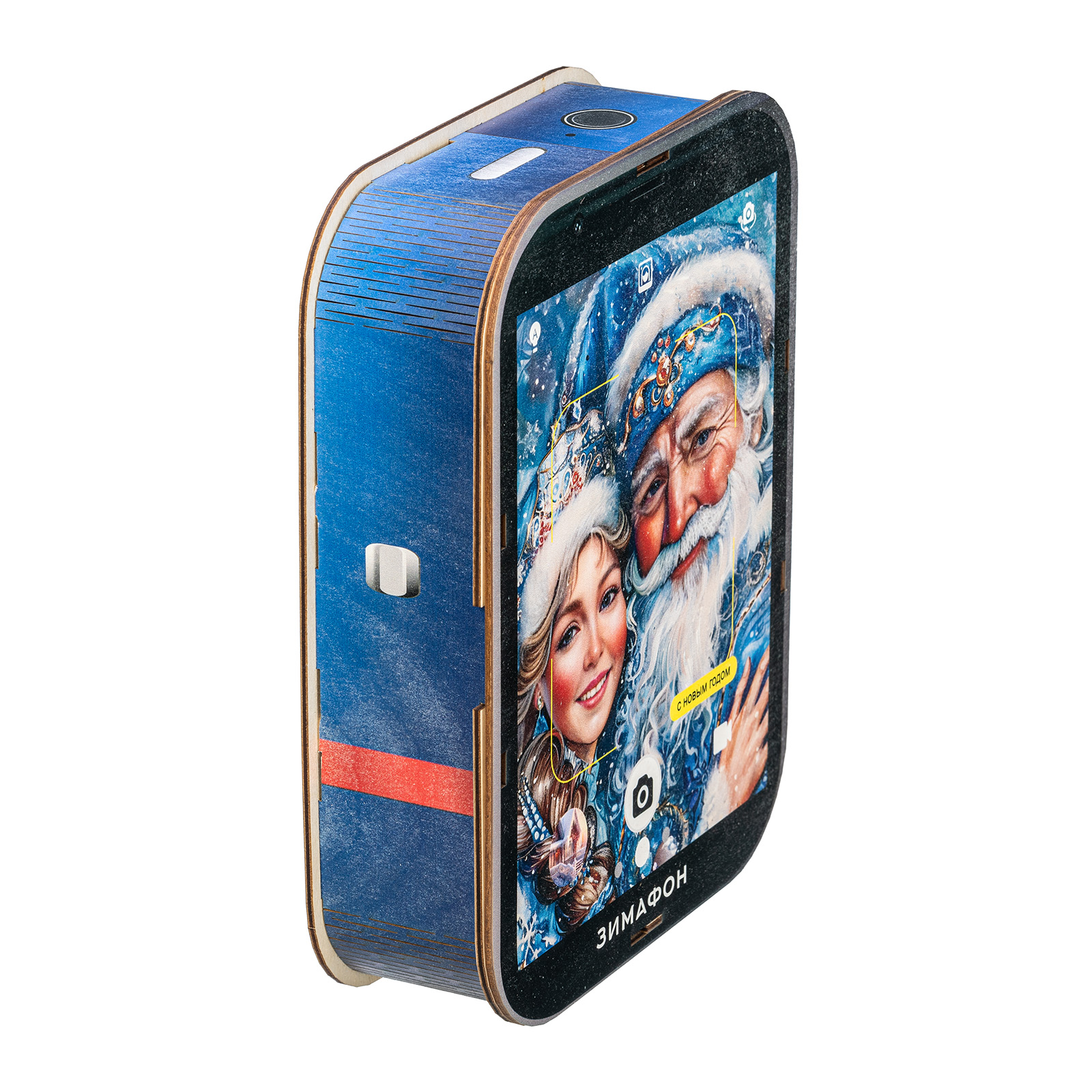 Современные дети настолько быстро развиваются, что порой их достаточно трудно удивить традиционными новогодними сладкими подарками. Именно для таких “продвинутых” сластен и был создан подарочный набор “Зимофон”. Это оригинальная деревянная коробочка, по форме оформлению максимально похожа на современный гаджет. На экране “Зимофона” мы видим Деда Мороза и Снегурочку, которые делают памятное фото с новогоднего праздника. Помимо хорошего разрешения камеры, данный смартфон обладает очень мощной памятью - в нем легко хранится целых 900 грамм вкусных и разнообразных сладостей, которых хватит на все новогодние праздники, а также небольшой памятный сувенир в виде символа наступающего года!